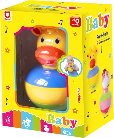 Die wippende Giraffe mit Stehauf-Sockel beschäftigt das Baby lange Zeit. Bei jeder Berührung schaukelt sie sanft und dank des integrierten Glöckchens ertönt ein angenehmes Klingeln, das die Wahrnehmung von Geräuschen und die Konzentration fördert.