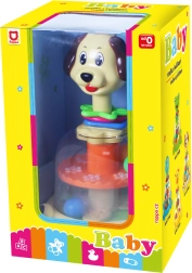 Unterhaltsames Kinderspielzeug – ein farbenfrohes mechanisches Karussell in Hundegestalt, gefüllt mit bunten Kügelchen, die sich nach Drücken des Kopfes drehen, hüpfen und rasseln. Beschäftigt auch die allerkleinsten Kinder hervorragend. Farben können von der Abbildung abweichen.