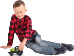 Der Traktor fährt im Freilauf, überwindet so leicht Boden und Teppich und fördert kreatives Spielen.