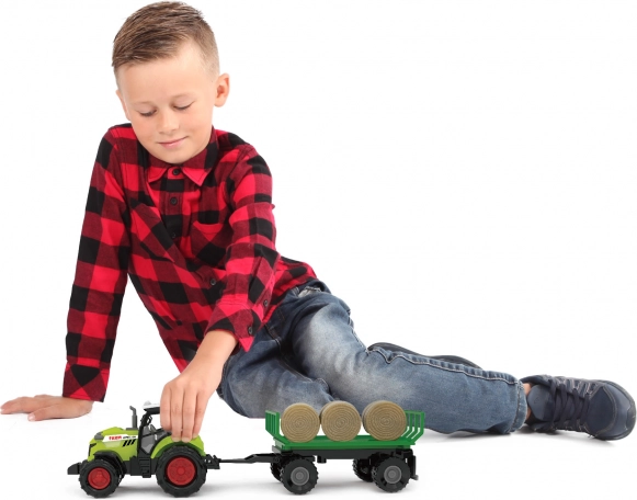 Der praktische Anhänger lässt sich schnell abkoppeln und die Strohballen können leicht abgenommen werden, sodass Kinder Be- und Entladen nachspielen können. Die kompakten Abmessungen sind ideal für Kinderhände und unterwegs.