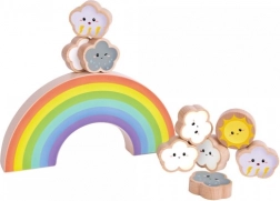 Sonne, Wolken, Regen und Gewitter – beim Stapeln auf den bunten Regenbogen lernen Kinder das Wetter auf unterhaltsame Weise kennen.