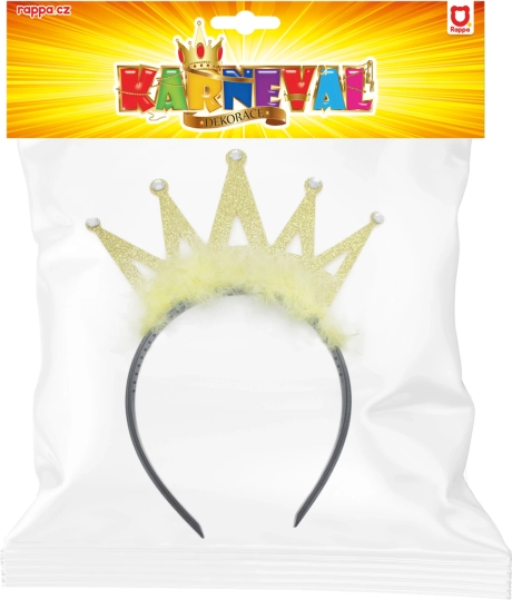 Elegantes Kinderstirnband mit goldener Krone, verziert mit Federn und glitzernden Steinen, ist das perfekte Accessoire für ein Karnevalskostüm. Schönes Design zieht die Aufmerksamkeit auf sich und bequemes Tragen ist garantiert.