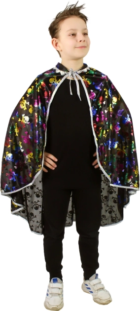 Verwandeln Sie Ihr Kind im Handumdrehen in einen Zauberer oder eine Hexe mit einem leichten und bequemen Umhang, der sich einfach am Hals binden lässt. Dank des Kragens und des auffälligen metallischen Totenkopf-Aufdrucks wirkt das Kostüm auf jedem Foto und auf der Tanzfläche besonders effektvoll.