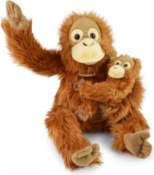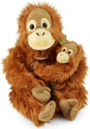 Entdecken Sie den bezaubernden Plüsch-Orang-Utan mit einem Jungtier, der auf umweltfreundliche Weise hergestellt wurde. Der handgenähte Orang-Utan misst 28 cm und besteht aus hochwertigem, weichem Plüsch, der ihm ein lebensechtes Aussehen verleiht.