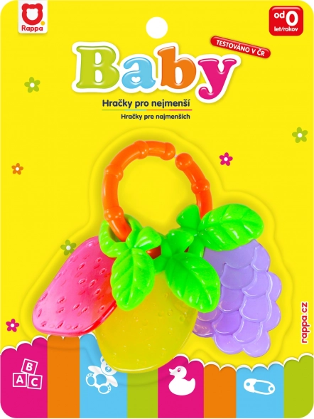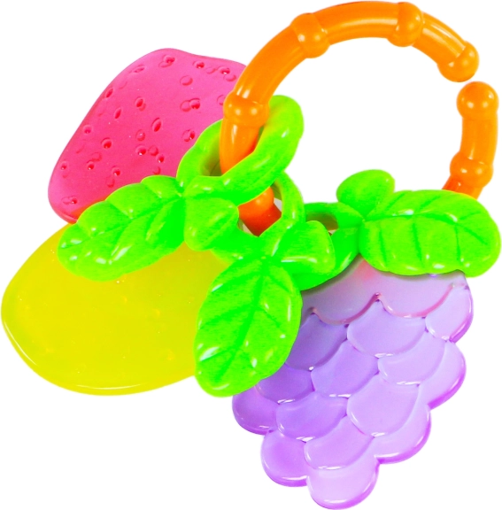 Das verspielte Rassel-/Beißspielzeug mit Obstmotiven begeistert Kinder mit kräftigen Farben und einer angenehmen Textur, die das Zahnfleisch massiert und beim Zahnen hilft. Die praktische Form unterstützt den natürlichen Griff und die Entwicklung der Feinmotorik.