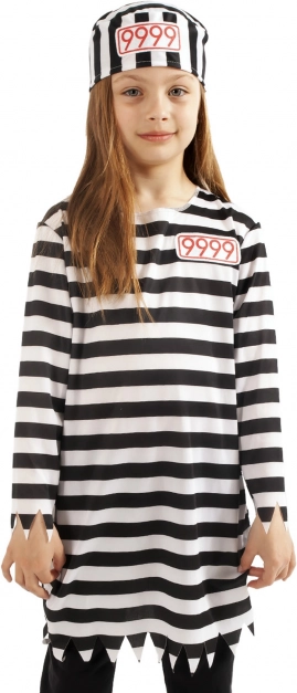 Verleihen Sie der Kinderverkleidung das gewisse Etwas mit dem klassischen gestreiften Gefangenenkostüm in Schwarz‑Weiß. Dank des universellen Schnitts und des angenehmen Materials lässt es sich bequem tragen – perfekt für einen ganzen Nachmittag voller Spiele und Spaß. Enthalten sind die ikonische Mütze und das Shirt mit aufgedruckter Nummer.