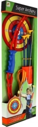 Dieses Kinder-Bogenschießset bietet jede Menge sicheren Spaß beim Zielen auf die bunte Zielscheibe. Der leichte Kunststoffbogen und die Pfeile mit Gummisaugnapf sind so gestaltet, dass sie leicht zu bedienen und schonend zu Oberflächen sind. Dank des mitgelieferten Köchers mit Schulterriemen können Kinder die Pfeile bequem tragen und haben sie stets griffbereit.