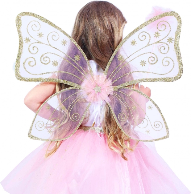 Die Flügel haben goldene Verzierungen und bringen eine magische Atmosphäre ins Spiel. Sie lassen sich leicht aufsetzen und sitzen fest.