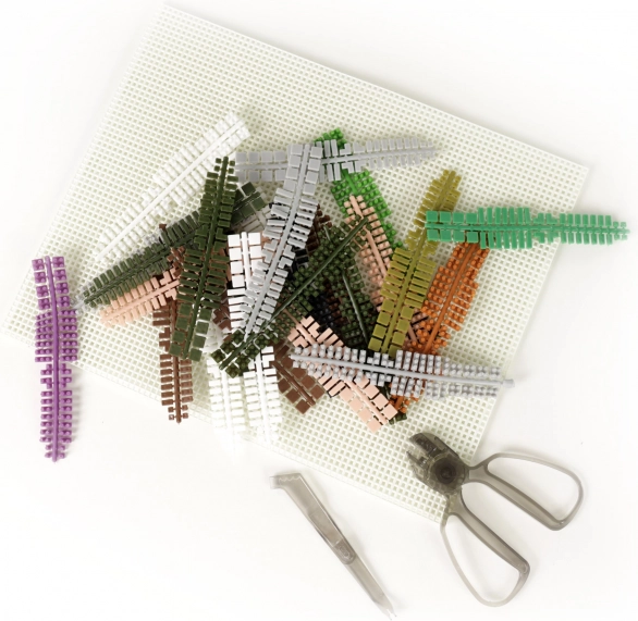 Im Lieferumfang sind Werkzeuge für das leichte Greifen und Einsetzen der Teile enthalten, sodass auch jüngere Kinder Freude am Zusammensetzen haben. Die Unterlage mit den Maßen 33 × 27 cm bietet ausreichend Platz, um ein detailliertes Panda-Bild zu gestalten.