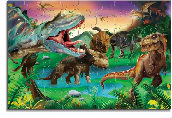 Dieses farbenfrohe Maxi-Puzzle mit beliebten Dinosauriern ist eine hervorragende Wahl für die ersten Puzzelerfahrungen. Die großen Teile liegen gut in kleinen Händen und greifen sauber ineinander – das unterstützt Geduld, Konzentration und die Entwicklung der Feinmotorik.