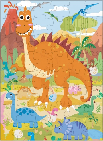 Entdecken Sie die Welt der Dinosaurier mit schön illustrierten Puzzles, ideal für die ersten Puzzleversuche. Dank der größeren Teile lassen sie sich von Kindern leicht handhaben, und das Puzzeln macht Spaß und ist zugleich lehrreich. Das fertige Bild mit den Maßen 60 × 44 cm schmückt das Kinderzimmer und bringt Freude über das eigenhändig geschaffene Werk.
