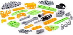 Außerdem wird Sie die Realitätsnähe des Spielzeugs begeistern, denn es ahmt echte Werkzeuge originalgetreu nach, die Papa in der Werkstatt hat. Im Set finden Sie einen Schraubendreher mit Schrauben und zwei austauschbaren Bits, einen Schlüssel mit Muttern und einen Bohrer.