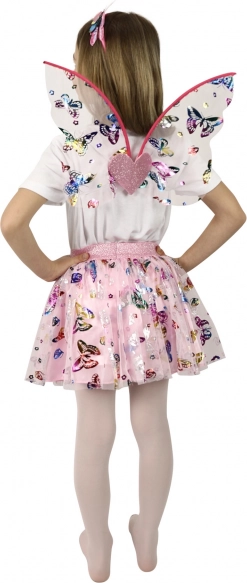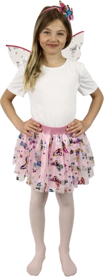Verwandeln Sie Ihre kleine Prinzessin in einen bezaubernden Schmetterling mit diesem großartigen Kostüm. Der rosa Rock mit bunten Schmetterlingen wird perfekt durch ein dekoratives Stirnband und Schmetterlingsflügel ergänzt. Perfekte Wahl für Rollenspiele oder Karnevalfeiern.