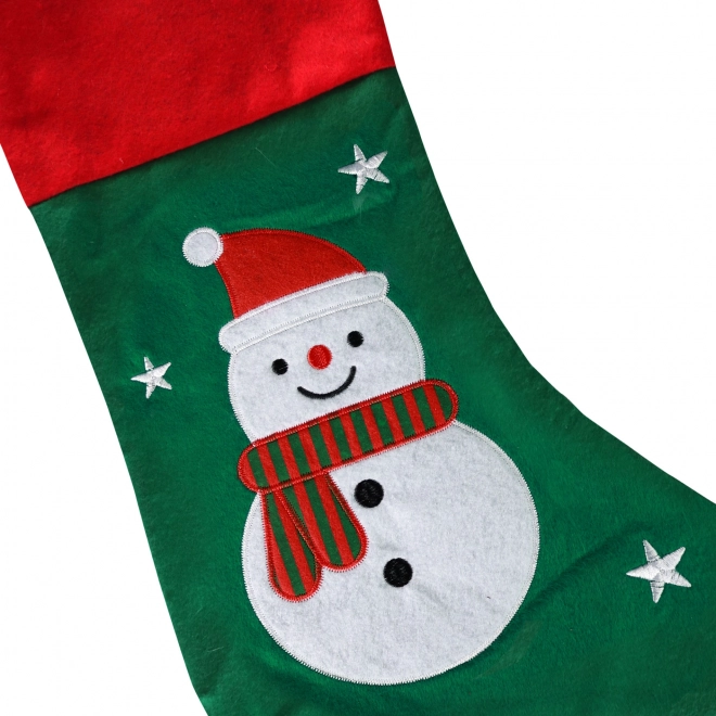 Suchen Sie nach der perfekten Dekoration für Ihr weihnachtliches Interieur? Dieser Weihnachtsstrumpf mit grünem Schneemann-Motiv ist eine tolle Wahl. Sie können ihn an den Kamin oder Baum hängen und mit Ihren Lieblingsleckereien und Kleinigkeiten füllen, die jedem Freude bringen.