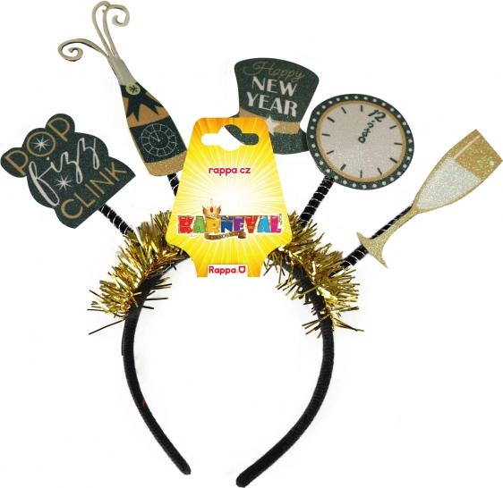 Dieses schwarz-goldene Stirnband ist die perfekte Dekoration für alle Silvesterfeiern und Partys. Es ist zart mit Elementen verziert, die typisch für die Silvesterstimmung sind. Das Stirnband ist für alle gedacht, die das neue Jahr stilvoll, spielerisch und elegant begrüßen möchten.