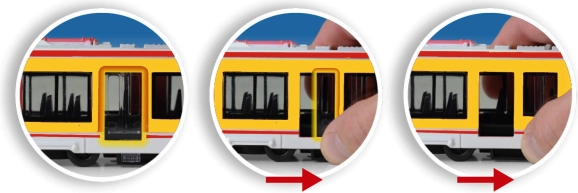 Für realistisches Spielen: manuell zu öffnende Türen. Ein einfacher Hebel unter den Türen ermöglicht leichtes Öffnen und Schließen.