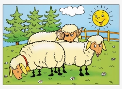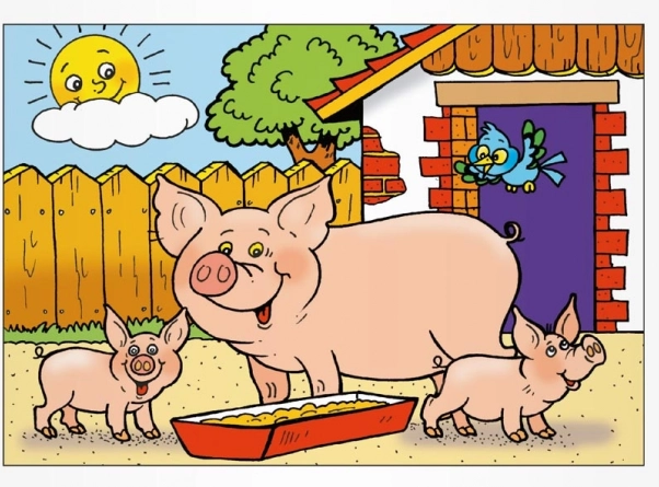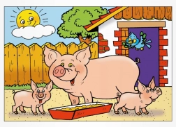8 (Katze und Kätzchen, Schaf, Hund, Ferkel, Hahn und Hühner, Pferd und Fohlen, Kuh mit Kalb, Gans)