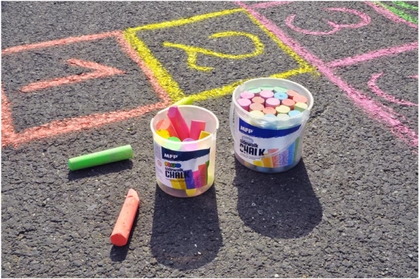 Das Set ist ideal für Aktivitäten im Freien auf dem Gehweg oder Spielplatz; nach dem Spaß lässt es sich einfach mit Wasser abwaschen. Farbzusammenstellung: 2× Gelb, 2× Grün, 4× Orange, 2× Rosa, 2× Violett.