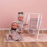 Die Puppe ist in einen stilvollen Overall mit Klettverschluss am Rücken gekleidet, ergänzt durch ein Mützchen und Schühchen im gleichen Design. Sie hat blaue, nicht schließende Acrylausen und angeklebte Wimpern, ohne Haare – ideal für einfache Pflege. Das Produkt erfüllt die europäischen Sicherheitsnormen (CE) und ist in einer Geschenkbox verpackt, somit sofort bereit zum Verschenken.
