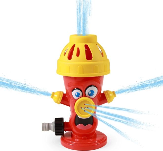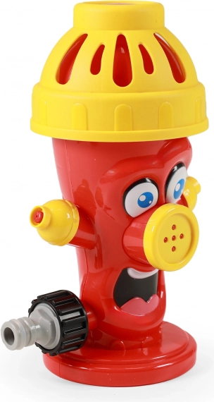 Dieser Spielzeugsprinkler hat fröhliche rote und gelbe Farben mit Comic-ähnlichen Zügen, die Kinder lieben.
