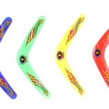 Kunststoff-Bumerang mit einer Größe von 30 cm. Verpackt im Beutel. Verpackungsmaße ca. 13,5 × 33 cm. Alter 3+