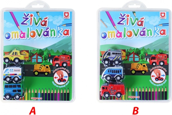 Entdecken Sie ein einzigartiges Set von kleinen Autos mit Malbüchern, die Sie nach Ihrer Fantasie ausmalen können. Das Set enthält 3 Mini-Autos mit Rückzugmechanismus und Malbücher mit Autothemen.<div>
