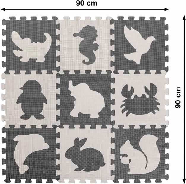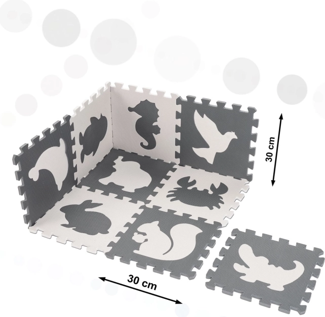 Entdecken Sie das kreative Spielvergnügen mit der Tier-Puzzle-Schlaumatte aus Schaumstoff. Diese große, kontrastreiche Spielmatte bietet Kindern eine spannende Möglichkeit, Formen und Farben zu erforschen.