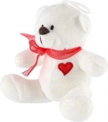 Der Plüschbär mit Schleife und Herz eignet sich als Geschenk oder Dekoration im Kinderzimmer.<p>