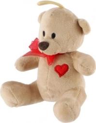 Niedlicher Plüschbär mit Schleife und Herz, ideal zum Kuscheln und zur Dekoration von Kinderzimmern. Geeignet für Kinder von Geburt an.