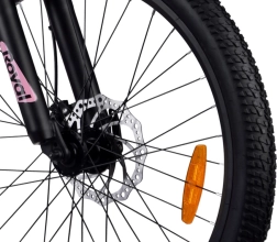 Dieses Fahrrad ist mit Scheibenbremsen ausgestattet, die eine präzise Kontrolle und sicheres Anhalten gewährleisten.