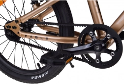 Herzstück ist der POWERGRIP HTD Riemenantrieb – leise, sauber und ohne Schmierbedarf. Doppelwandige Aluminium‑Felgen mit 20 Speichen pro Rad und Kenda‑Reifen 16×1,75" sorgen für Stabilität auf verschiedenem Untergrund, während V‑Brakes mit kindgerechten Hebeln zuverlässiges Abbremsen gewährleisten.