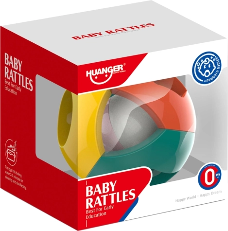 Der farbenfrohe Rasselball ist das ideale erste Spielzeug für Babys. Dank der leichten Konstruktion und des offenen Designs liegt er auch in kleinen Händchen gut. Die innere Kugel erzeugt bei jeder Bewegung ein sanftes Geräusch, das die auditive Stimulation und die Konzentration unterstützt.