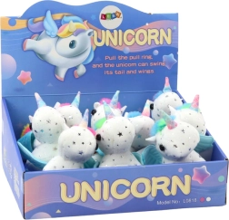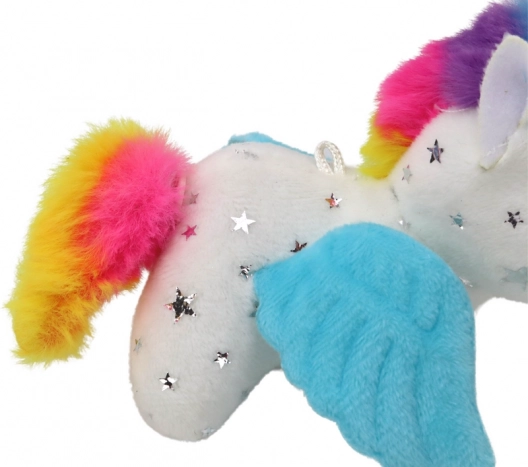 Betreten Sie eine zauberhafte Welt mit dem Plüsch-Einhorn, das Kinder auf den ersten Blick lieben werden. Das weiche weiße Fell mit silbernen Sternchen, die bunte Mähne und der Schwanz sowie die niedlichen blauen Flügelchen verleihen dem Spielzeug einen einzigartigen Charme. Nach dem Aufziehen der Kordel beginnt das Einhorn hüpfend zu laufen und mit dem Schwanz zu wedeln – der Spaß nimmt kein Ende.