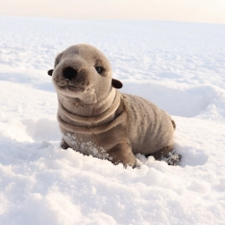 Der Plüschseelöwe hat realistische Details und Farben, die an einen echten Seelöwen erinnern.