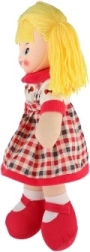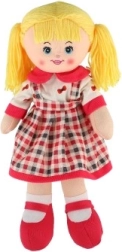 Die Stoffpuppe besteht aus weichem, sicherem Textil – ideal zum Kuscheln und Spielen.