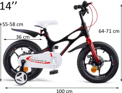 Das RoyalBaby Space Shuttle 14" kombiniert modernes Design mit erstklassiger Ausstattung für einen sicheren Start. Der Magnesiumrahmen ist außergewöhnlich leicht und stabil, breite 2,4"-Reifen und Stützräder sorgen für hervorragende Stabilität. Die doppelten Scheibenbremsen vorne und hinten bieten zuverlässige Bremskraft, auch bei den ersten Fahrversuchen.