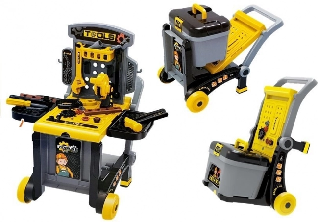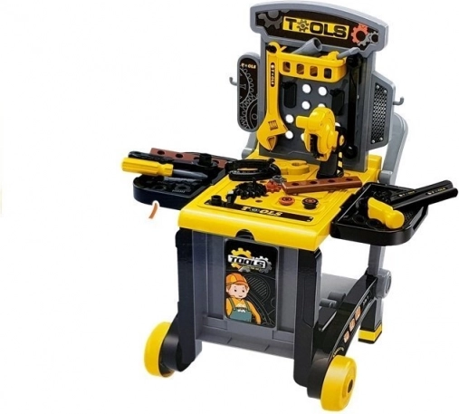 Lässt sich leicht von einer stabilen Werkbank zu einem mobilen Wagen umbauen, damit das Werkzeug in jede Ecke des Kinderzimmers mitgenommen werden kann.