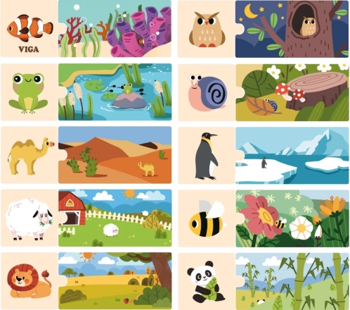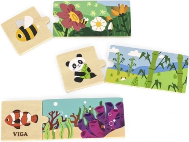 Diese logischen Puzzle von VIGA sind ein idealer Begleiter für die Entwicklung des logischen Denkens und der Vorstellungskraft von Kindern. Das Spiel besteht darin, die 20 bunten Teile richtig zu verbinden, die zusammen Bilder von Tieren und ihrer natürlichen Umgebung bilden. Jedes Teil ist sorgfältig aus Holz gefertigt, überzogen mit ungiftiger Farbe, was Langlebigkeit und Sicherheit für Kinder gewährleistet.