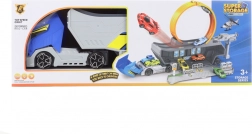 Starten Sie eine Rennfahrt mit diesem fantastischen LKW mit Abschussbahn! Verwandeln Sie den LKW mit einer einzigen Bewegung in eine Basis für die Bahn. Der obere Teil des LKWs ist zum Platzieren der Bahn entworfen, während der untere Teil als stabile Basis fungiert.