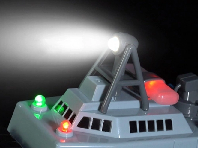 Das Boot ist mit einer Fernsteuerung ausgestattet, die volle Kontrolle über die Fahrt und die Wasserspritzfunktion für ein realistisches Spielerlebnis ermöglicht.