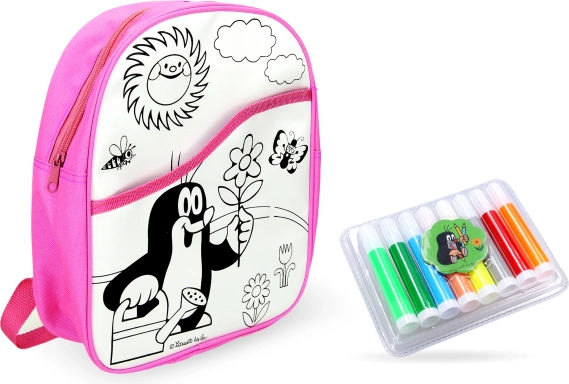 Ausmal-Rucksack Rosa mit dem Kleinen Maulwurf, 30 cm und 8 Filzstiften