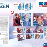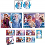 Entdecken Sie die zauberhafte Welt von FROZEN mit einem vielseitigen Spieleset, das Feinmotorik, Konzentration und Gedächtnis fördert. Zwei Puzzles mit demselben Endformat von 24 × 17 cm, aber unterschiedlicher Teileanzahl, ermöglichen es Kindern, den Schwierigkeitsgrad schrittweise zu steigern. Das Memo-Spiel trainiert das visuelle Gedächtnis und die 6 Kunststoffwürfel bieten eine weitere Variante zum Zusammensetzen mit beliebten Motiven.