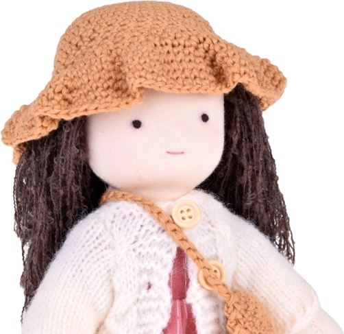 Diese charmante, weiche Puppe ist von der Waldorfpädagogik inspiriert und zeichnet sich durch ein schlichtes, harmonisches Erscheinungsbild aus. Zart angedeutete Augen und Mund lassen Raum für die kindliche Vorstellungskraft und fördern ganz natürlich Emotionen und empathisches Spiel. Der kuschelig-weiche Körper, abgerundete Formen und sanfte Textilien laden zum Schmusen ein.