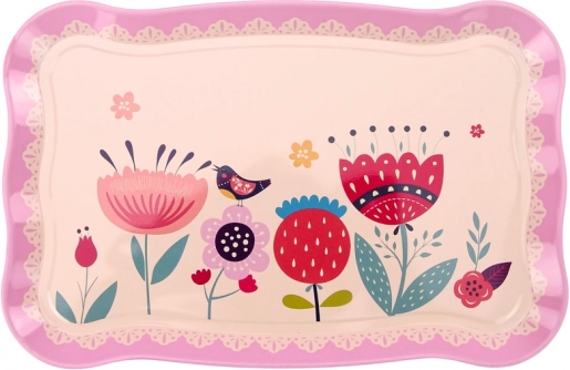 Ein dekoratives Tablett mit Blumenmotiven erleichtert das Tragen und verleiht dem Servieren echtes Café-Flair.