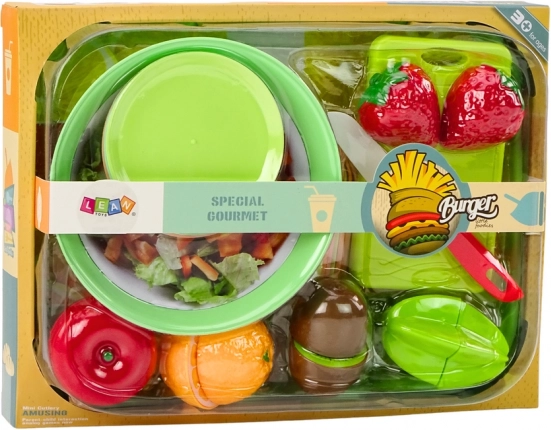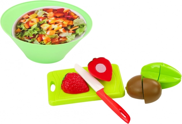 Das Spielset zum Schneiden von Salat und Obst ist eine großartige Wahl für Kinder, die gerne Kochen und Essenszubereitung nachspielen. Das Set besteht aus 25 Teilen. Das große Tablett ist geräumig und praktisch, ideal zum Servieren von Speisen. Die Salatschüssel, gefüllt mit Nachbildungen frischen Gemüses, lädt Kinder zum Spielen ein und vermittelt Wissen über gesunde Ernährung.