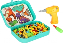 Kreatives Mosaik im Koffer mit Akkuschrauber – Konstruktionsspielzeug für Kinder – Dinosaurier