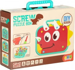 Entdecken Sie ein unterhaltsames und lehrreiches Spielzeug für kleine Baumeister: ein kreatives Mosaik in einem handlichen Koffer mit elektrischem Schraubendreher. Aus bunten Teilen und Schrauben gestalten Kinder flache und 3D-Bilder mit Dinosauriermotiven und fördern dabei Feinmotorik, Kreativität und logisches Denken. Der leichte Koffer ist einfach zu tragen und hält alle Teile ordentlich an ihrem Platz.