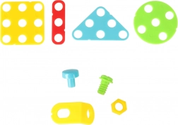 Dieses kreative Mosaik kombiniert farbige Teile, Schrauben und Werkzeuge, damit Kinder Muster, Tiere und einfache 3D-Modelle gestalten können. Die batteriebetriebene Bohrmaschine und der Schraubenzieher machen das Spiel zu einem echten Heimwerkerabenteuer und fördern die Hand-Auge-Koordination.