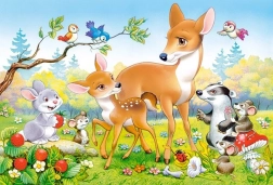 Dieses großformatige Puzzle ist perfekt für die ersten Puzzleeinstiege. Dank der größeren Teile lässt es sich leicht greifen und Kinder lernen spielerisch Formen und Farben zu erkennen. Nach dem Zusammensetzen entsteht ein schönes Motiv mit einem Reh, das jedes Kinderzimmer schmückt.