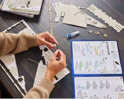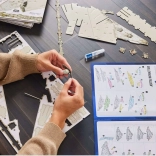 Die 223 Teile lassen sich leicht aus den Bögen lösen; der beiliegende Kleber und die verständliche Anleitung helfen beim Aufbau ganz ohne Spezialwerkzeug.